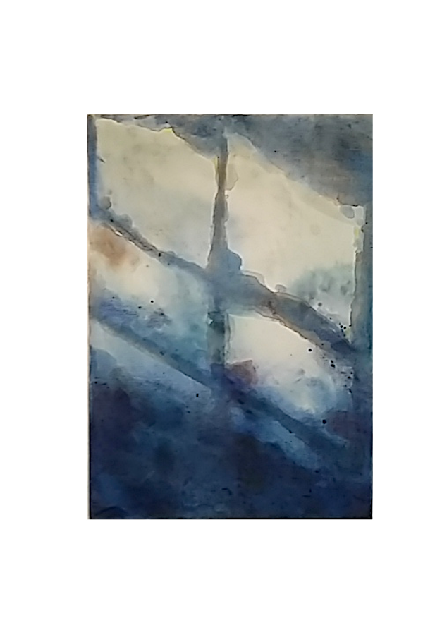 A wave, although this looks rather abstract as a result of my scrunching of the canvas. Same technique as the previous two, very diluted acrylic paint applied wet on wet in many layers. I was lucky in that I could use the fantastic space of Brevens Hjärta (https://www.facebook.com/www.brevenshjarta.se/) and be able to move the comparatively large canvas around on the floor in order to force the paint to run and settle where I wanted it to. The building is old with an uneven floor so tilting the canvas just so was acheived by inserting brushes of various sizes under the board onto which the canvas was stapled. I found that the paint separated into layers of pigment so coming back in the morning to inspect the result of the drying process was exciting!